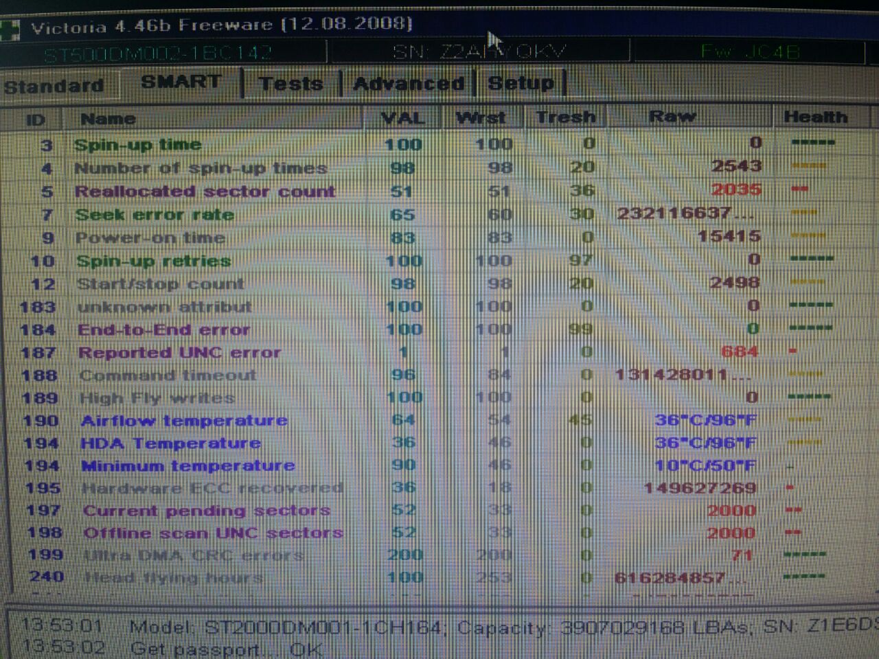 И можешь посмотреть еще раз актуальное состояние смарта. Кол-во реалоцированных должно возрасти :)