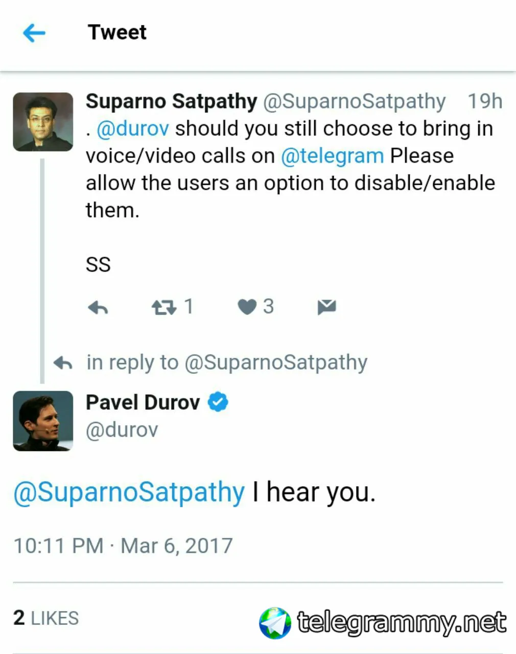 ну это звонок Дурову уже