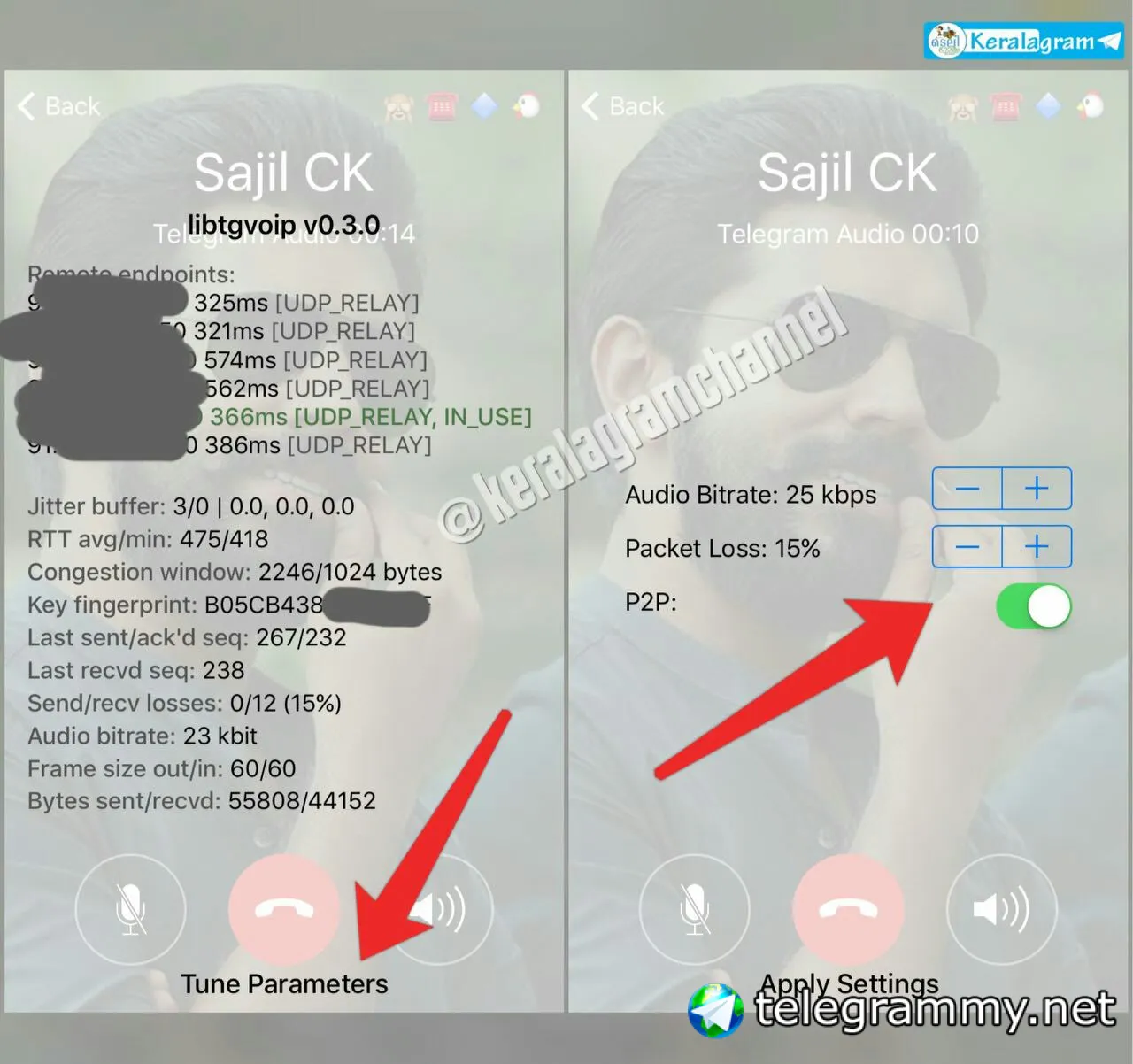 Telegram iOS allows to Enable/Disable P2P, Change audio bitrate and packet loss settings for tuning based on network