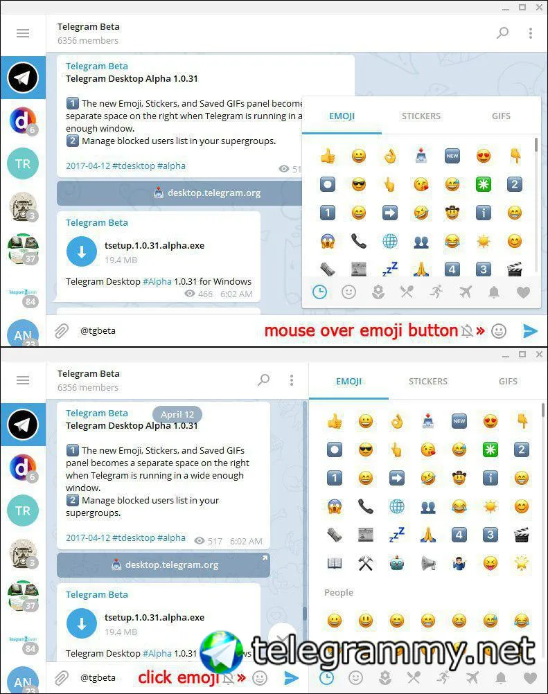 Если вас раздражает статичная панель эмодзи/стикеров/GIF справа от текущего чата, просто нажмите на символ эмодзи, и панель исчезнет.