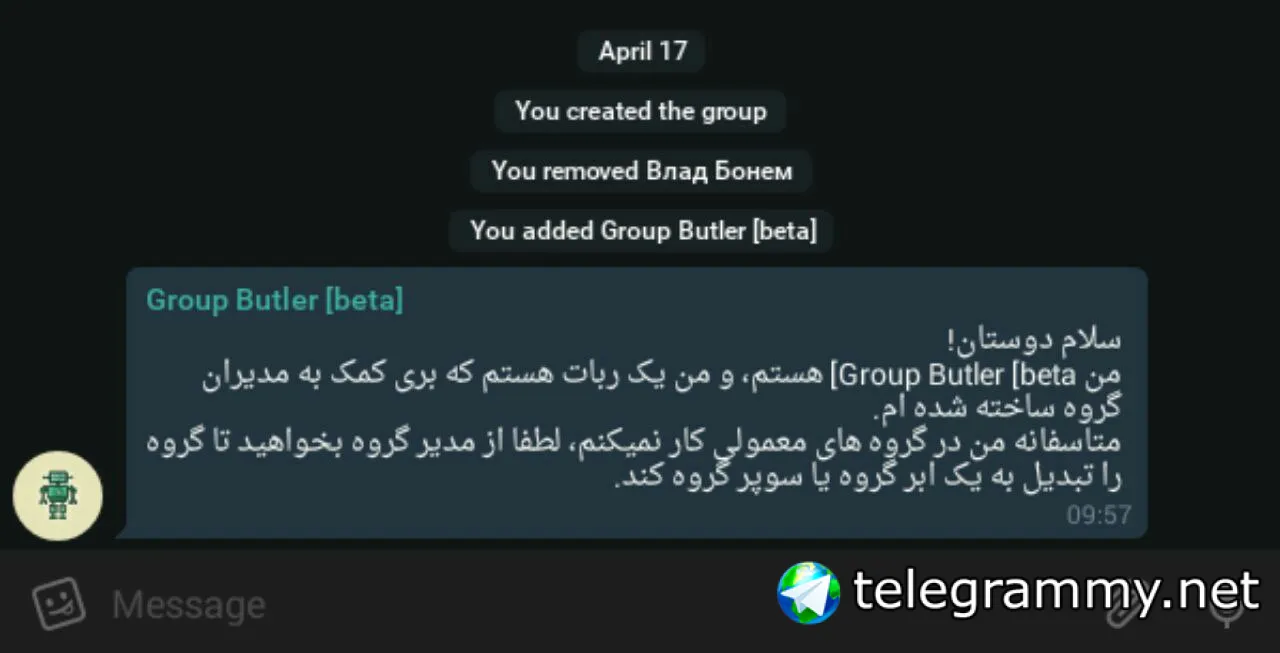 Добавить сначала человека. Создать группу. Удалить человека, добавить бота