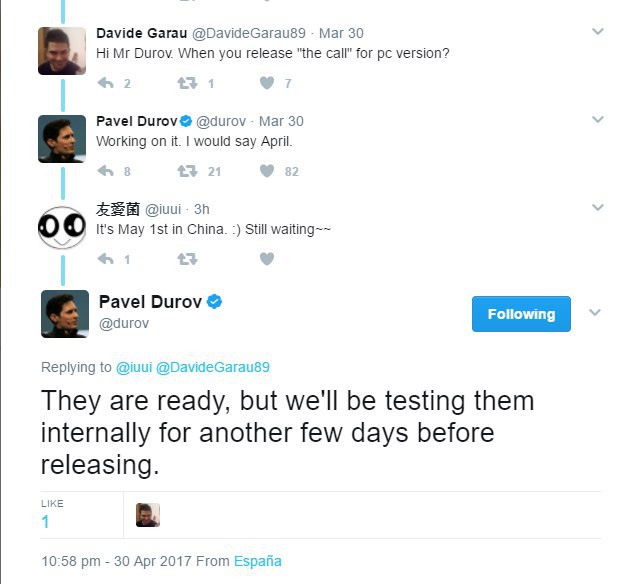 Звонки для Telegram #Desktop уже готовы, но пока что тестируются.