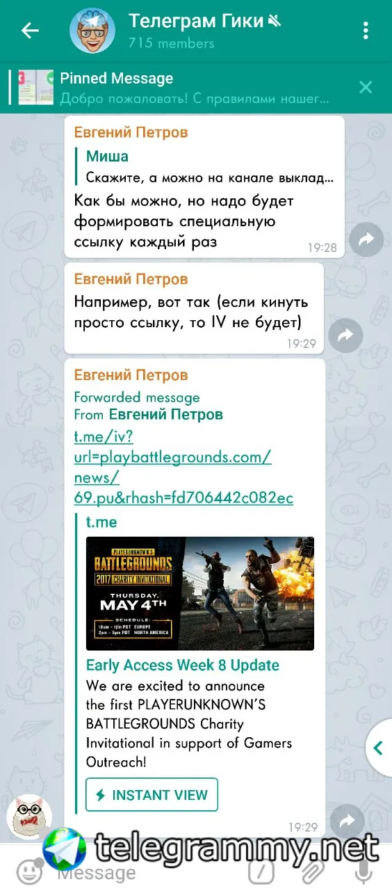 Скажите, а можно на канале выкладывать новости с собственного сайта а не через телеграф, что бы они читались через instant view