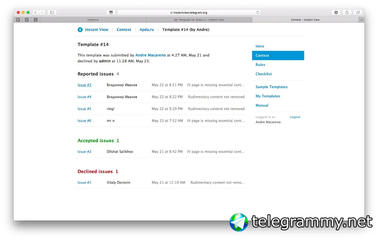 Было бы еще идеально, если бы о подтвержденных ишью на твои шаблоны и твои подтвержденные ишью так же сообщали.