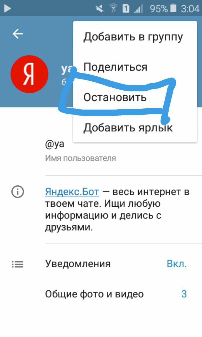 Можно stop and block bot