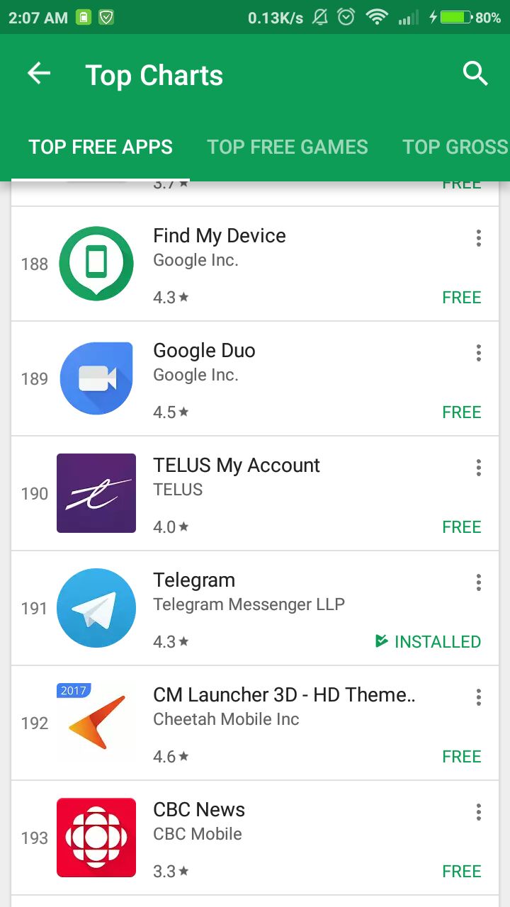 В Канаде Телеграма нету даже в топ 500