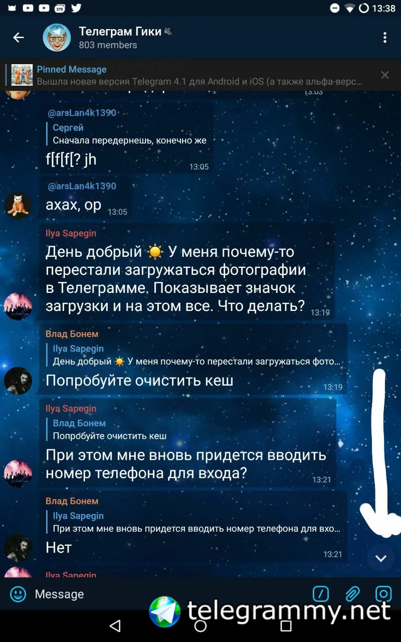 День добрый ☀️ У меня почему-то перестали загружаться фотографии в Телеграмме. Показывает значок загрузки и на этом все. Что делать?