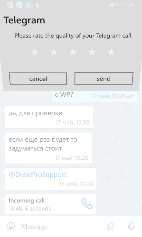 а у меня на 550 люмяшу поначалу один из десяти звонков проходил с тдесктоп и с телеграма на андроид