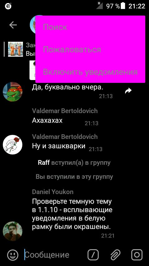 Проверьте темную тему в 1.1.10 - всплывающие уведомления в белую рамку были окрашены.