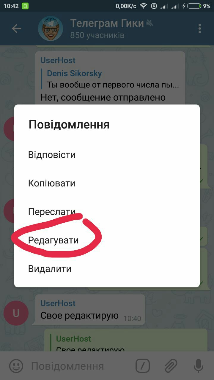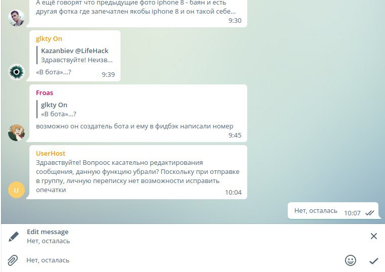 В этом чате могу отредактировать свое сообщение