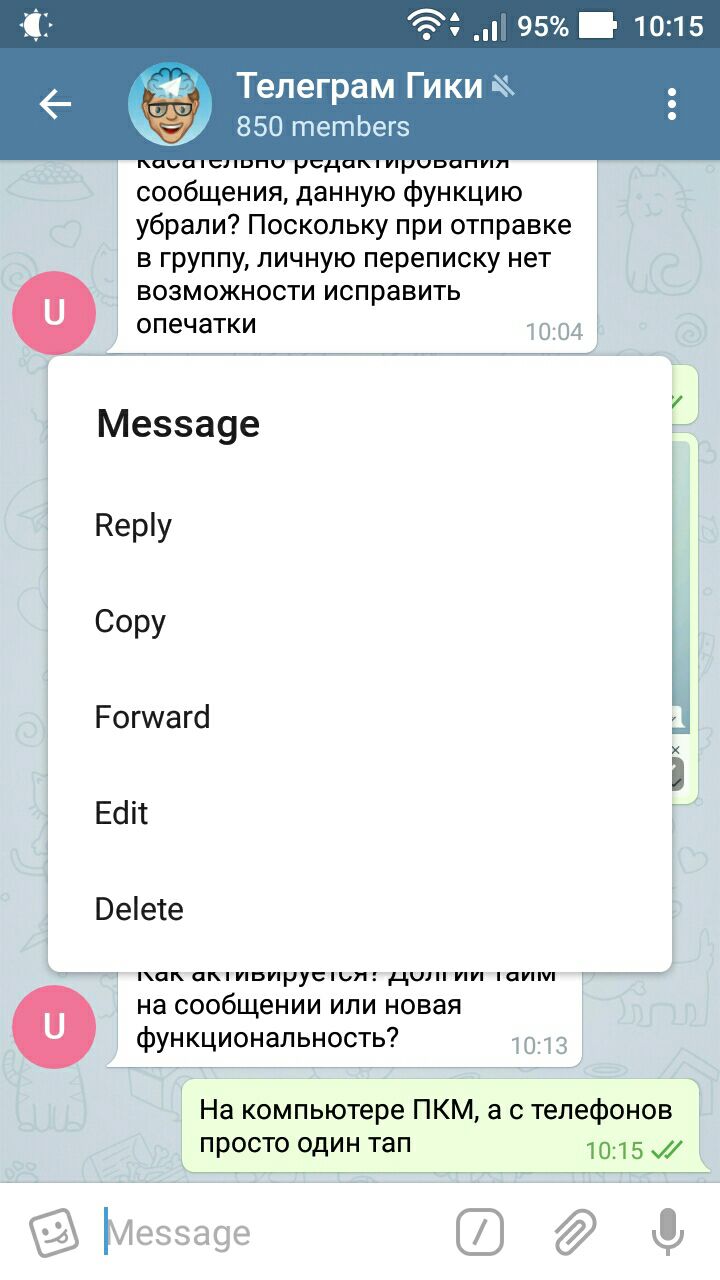 Здравствуйте! Вопроос касательно редактирования сообщения, данную функцию убрали? Поскольку при отправке в группу, личную переписку нет возможности исправить опечатки
