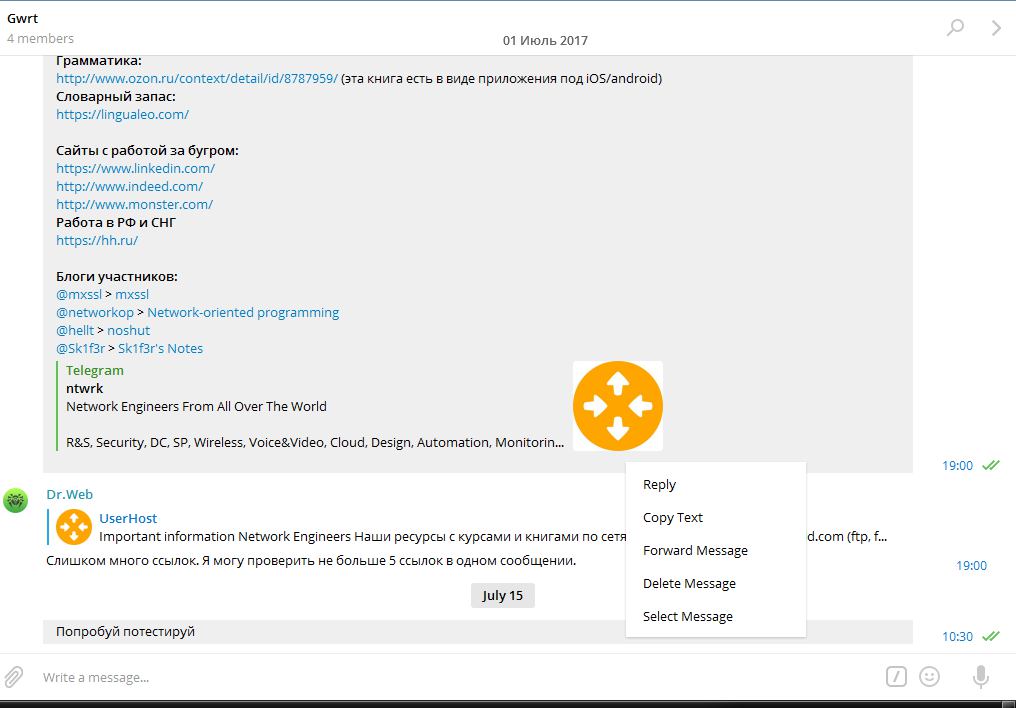 Не во всех чатах работает
