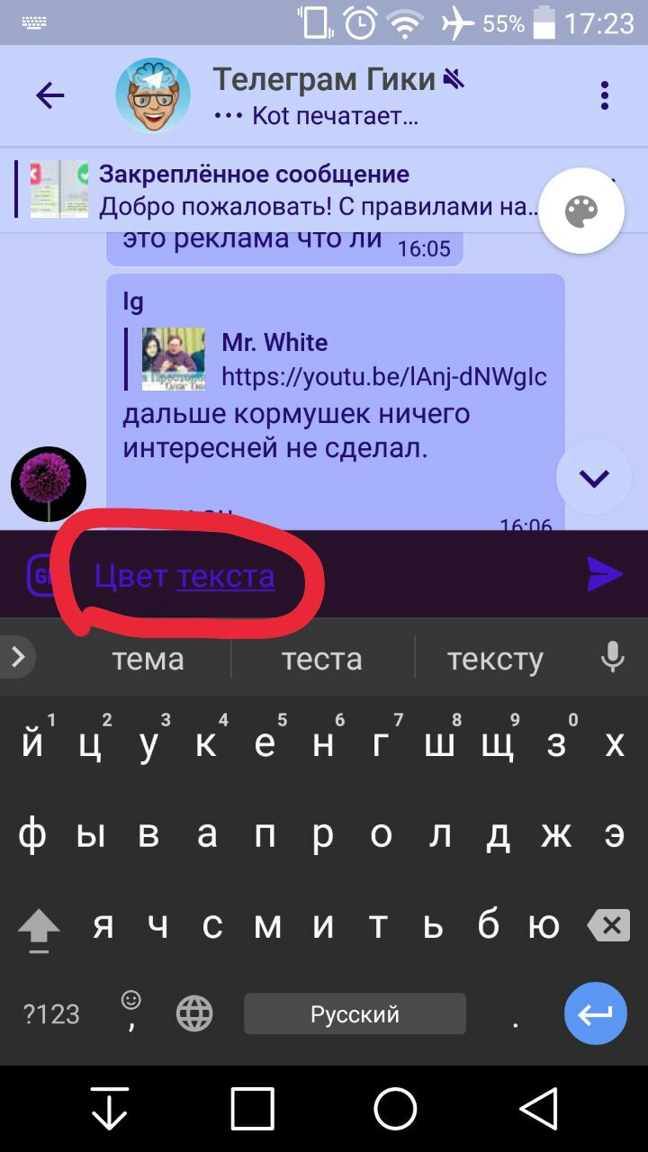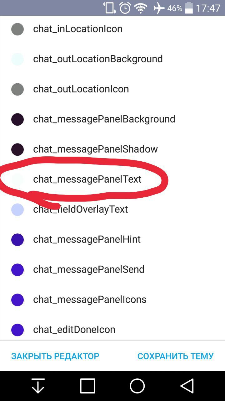 Подскажите пожалуйста названия параметра в редакторе тем. Ни как не могу найти, что бы поменять цвет вводимого текста.