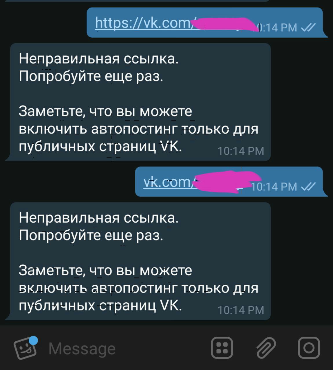Группа в телеграме? Я создал бота через @manybot и в самом боте хочу подключить постинг. Но что-то он не хочет