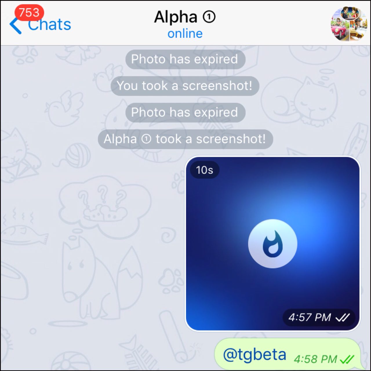 🛡 Your partner will notice if you take a screenshot of self-destructing photo/video on your private chat.