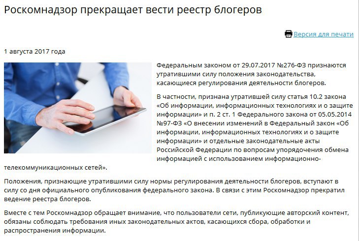 Реестр блогеров наконец-то прекратил работу. Закон, который не проработал ни дня, просто феерия всей законодательной системы по отношению к интернету (да и не только)