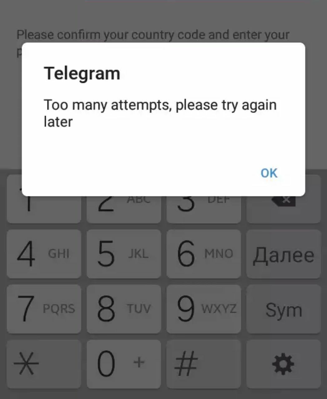 Слишком много попыток входа в аккаунт телеграм. Попробуйте позже написано.