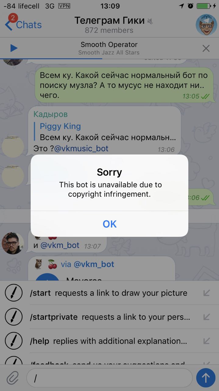 Это значить, что на айфонах заблокирован этот бот из-за копирайта