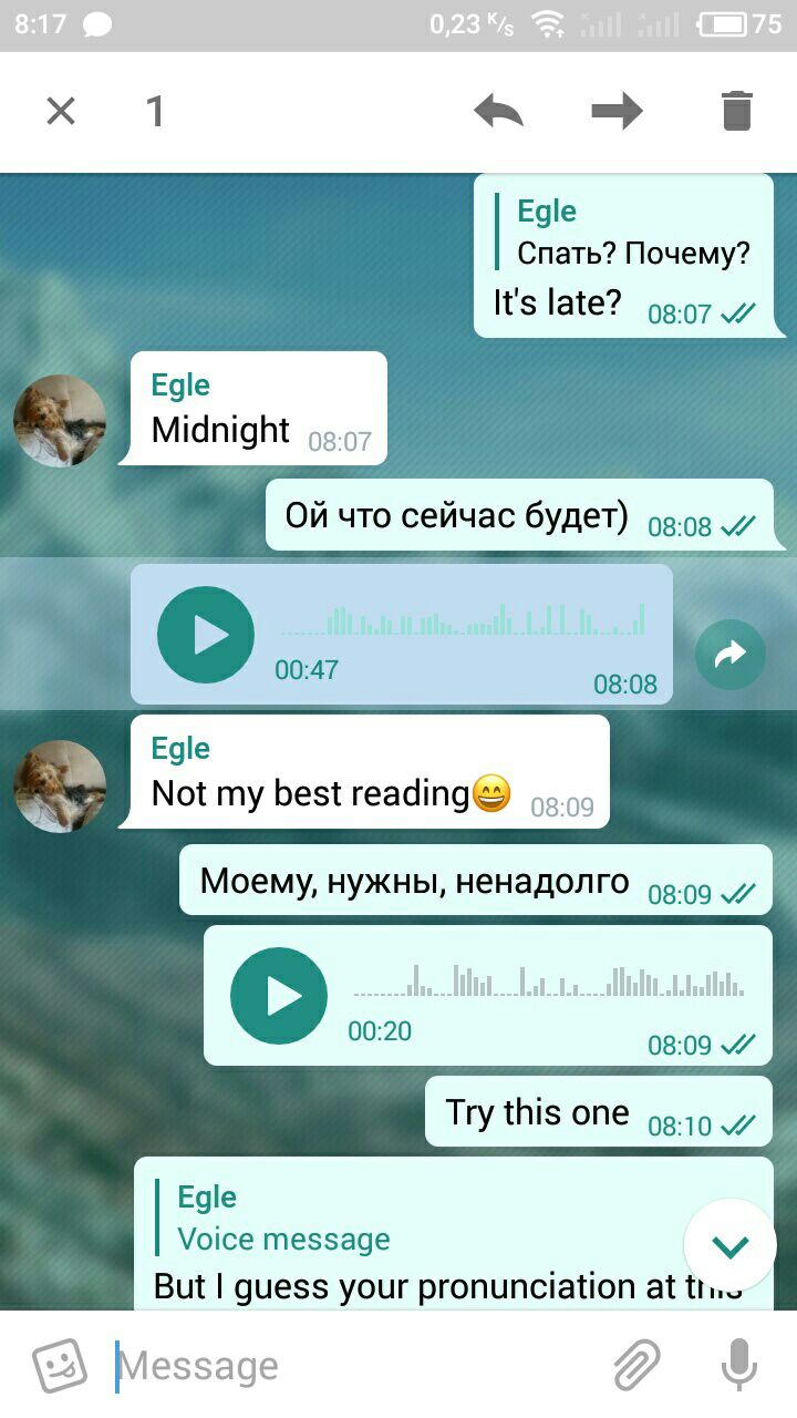 Захожу в диалог, последнее сообщение от меня..