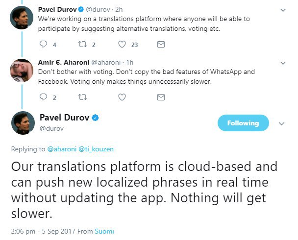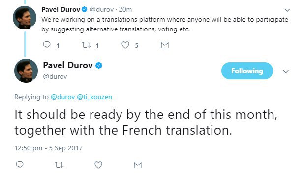 К концу этого месяца в Telegram появится платформа для перевода приложения на разные языки.