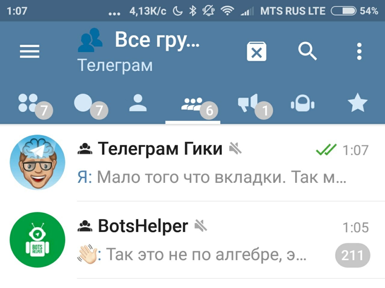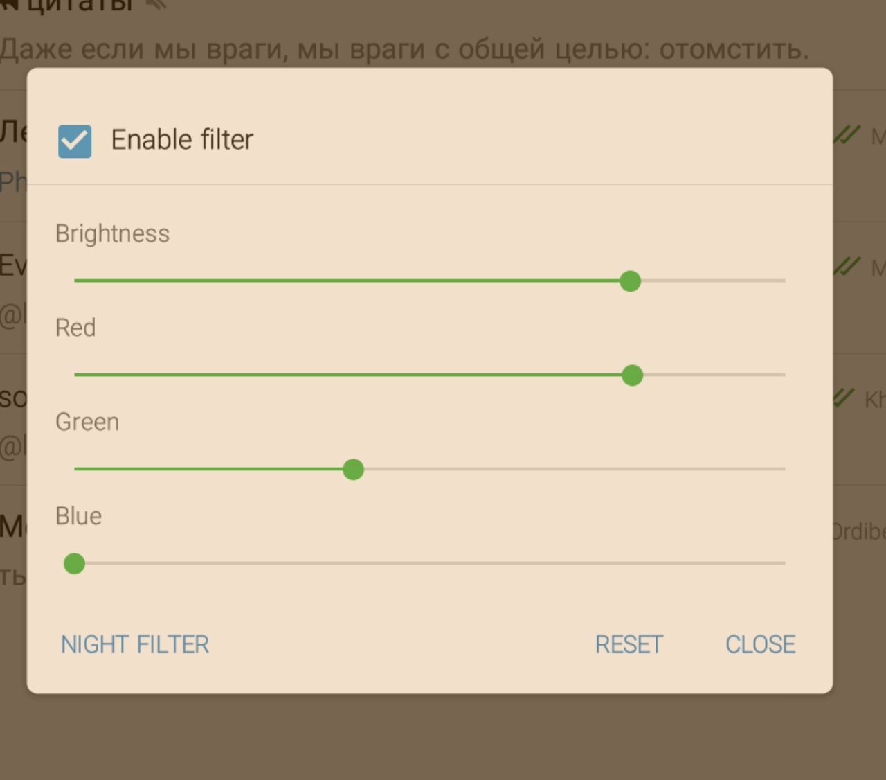 В телеграфе есть встроенный экранный фильтр