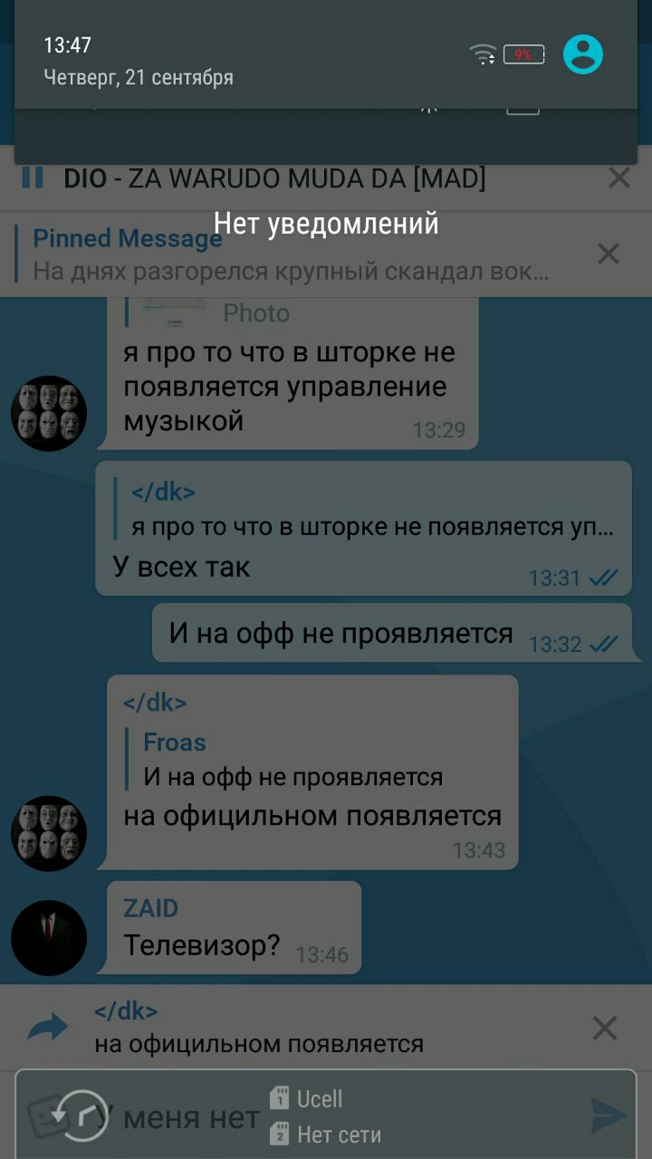 Именно поэтому я и задал вопрос в чате, может в challegram у меня что-то не так и не появляется плеер в шторке.