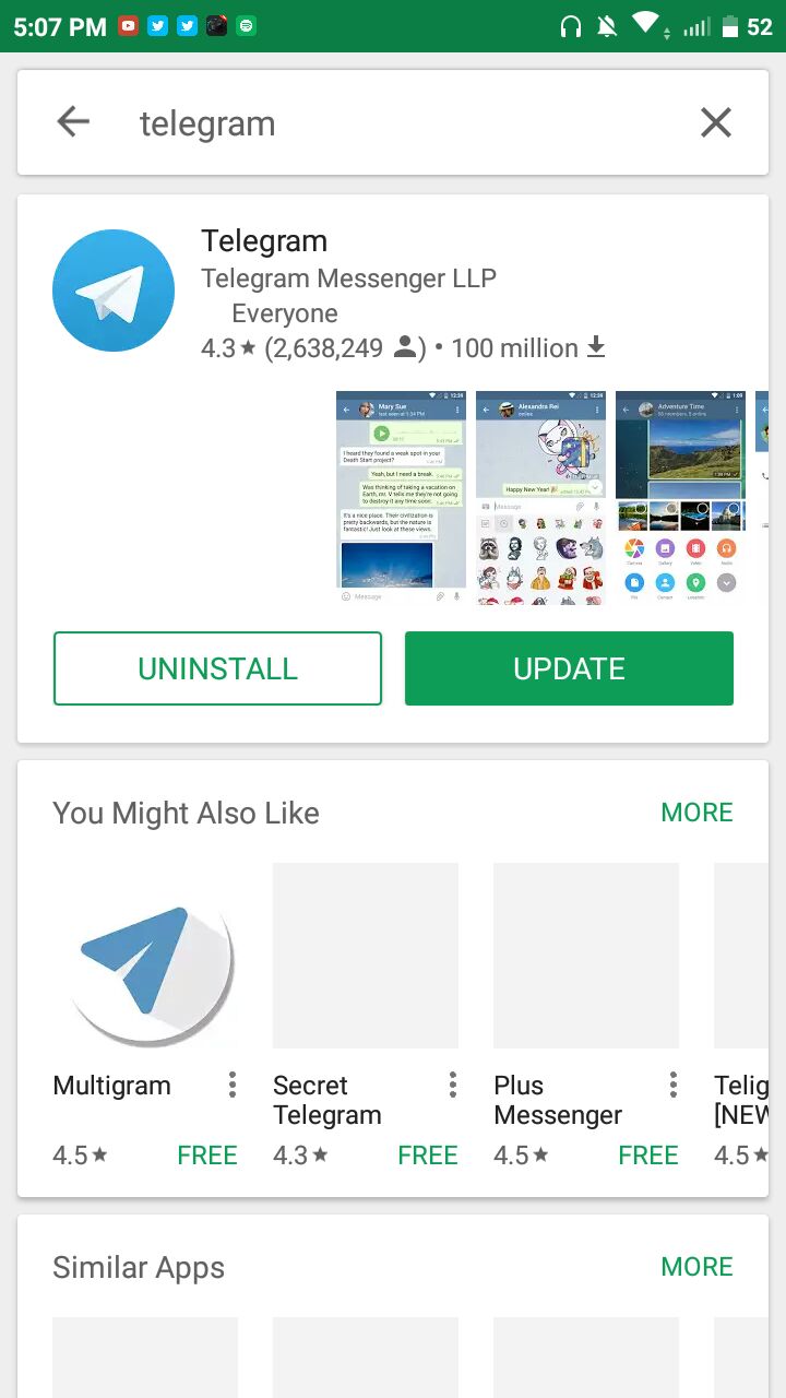 Привет всем. У меня вылетает официальный телеграмм. Только что скачал и установил. Несколько секунд "держится", а затем без объявления ошибки и т. п. просто закрывается. В чем проблема? Андроид версии 7.0