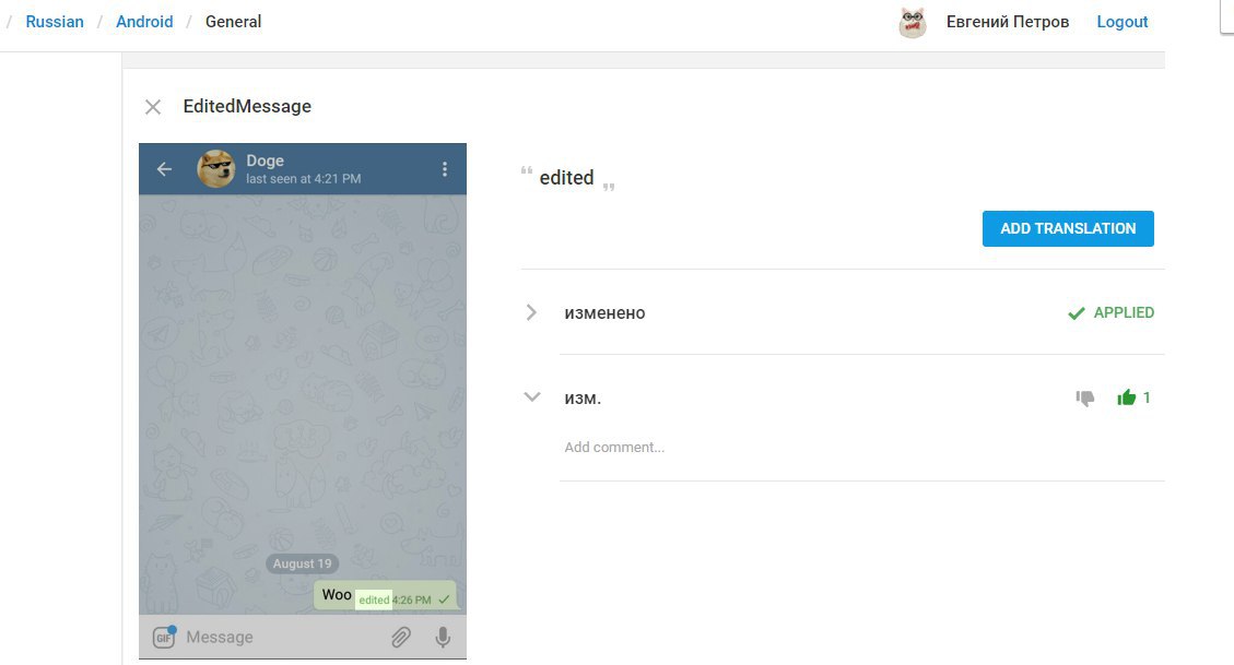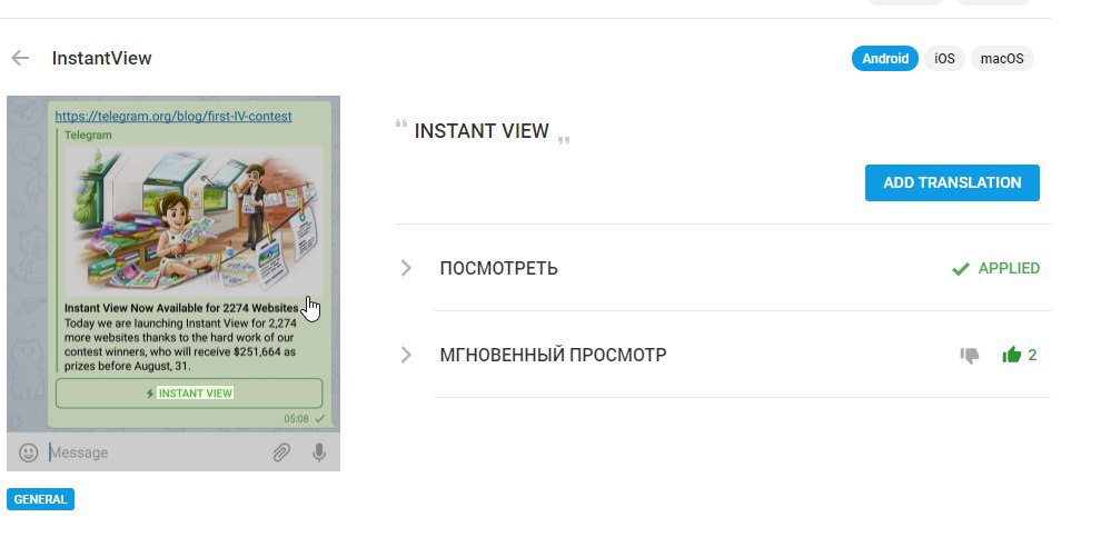 Круто, что теперь переводы пушатся на устройства пользователей сразу после апрува админами ТГ! 👍