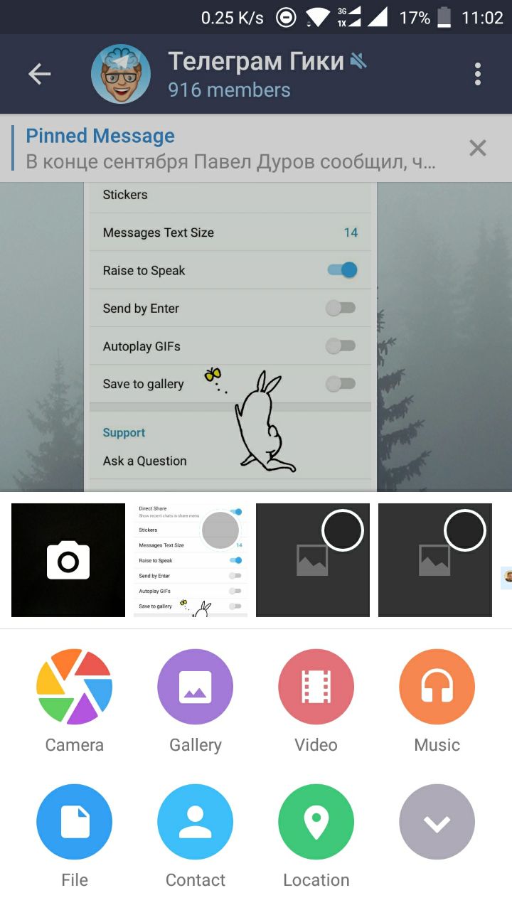 По кнопке со скрепкой в превью все что мне шлют в телеграмме