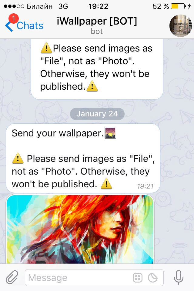 Суть бота в том что люди кидают обои, а я их потом публикую в канале