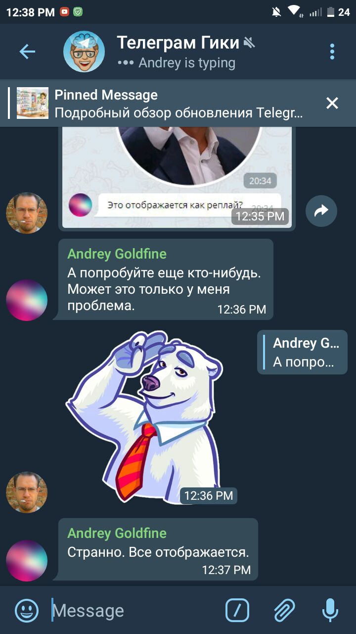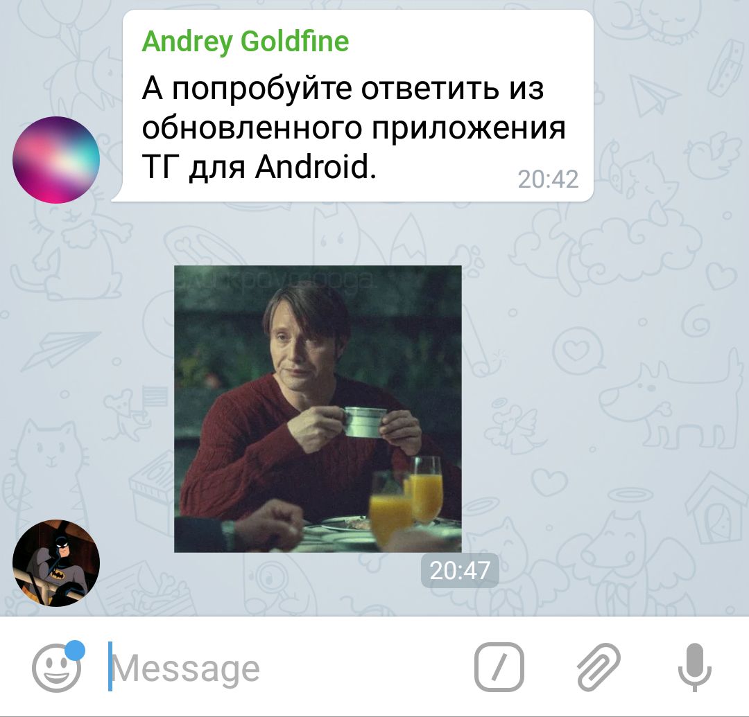 А попробуйте ответить из обновленного приложения ТГ для Android.