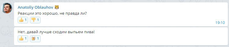И вместо десятка пиктограмм и двух развёрнутых ответов получаем кучу флуда (самый большой бич телеги) и два развёрнутых ответа затерялись где-то среди этой кучи флуда, которая тоже претендует на звание развёрнутых ответов :)