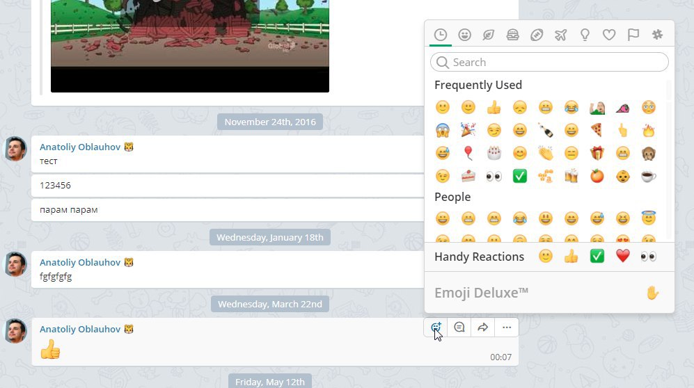 Ещё пример - задаёшь вопрос, на который ожидаешь получить эмоциональные ответы (реакции) от остального актива чата. Вопросы относительно принимаемых решений, например. В большинстве случаев хватает одной пиктограммы. При отсутствии реакций в лучшем случае люди ставят свои одобрялки или другие смайлики отдельными сообщениями, засерая чат. В худшем - вместо одной пиктограммы пишут длинное описание своего эмоционального мнения, которое по факту не нужно