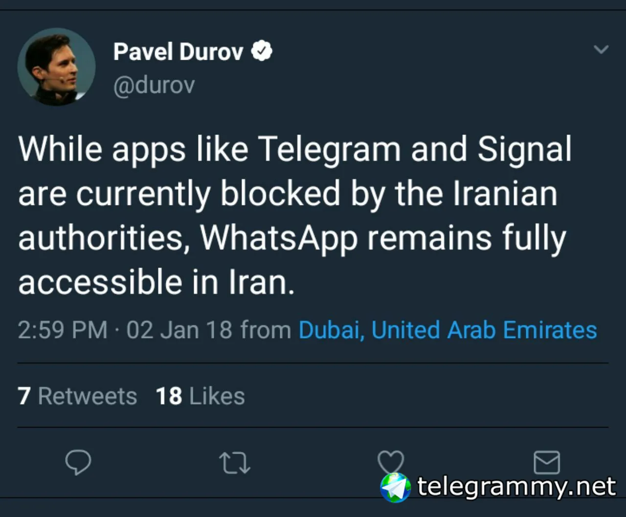 В то время, когда такие приложения как Telegram и Signal заблокированы иранскими авторитетами (правительством), WhatsApp остается полностью доступным в Иране.