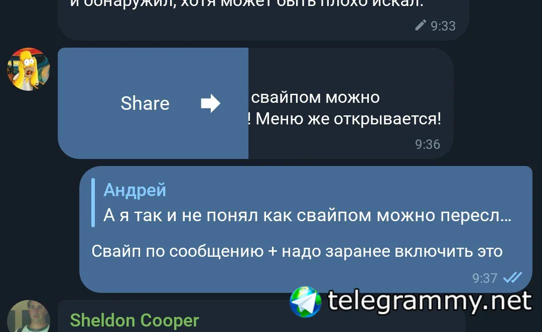А я так и не понял как свайпом можно переслать сообщение! Меню же открывается!