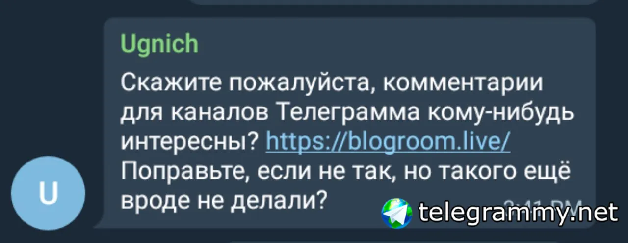 Скажите пожалуйста, комментарии для каналов Телеграмма кому-нибудь интересны? https://blogroom.live/