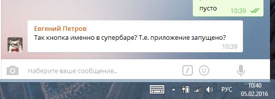 Так кнопка именно в супербаре? Т.е. приложение запущено?