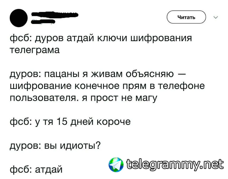 Как можно дать то, чего у тебя нет? Откуда у Дурова ключи конечного шифрования?