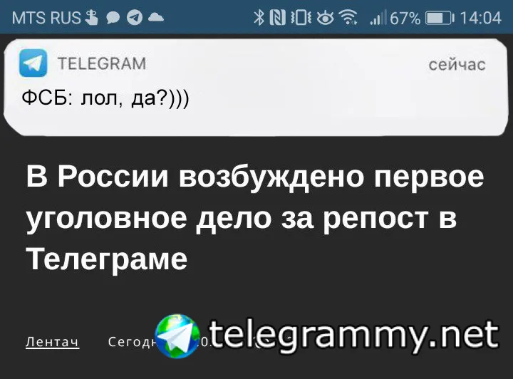 Теперь и в телеграме репостить небезопасно. В России возбуждено первое уголовное дело по экстремистской статье за репост в Тележке: http://lentach.media/df94
