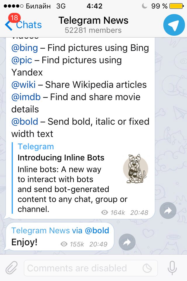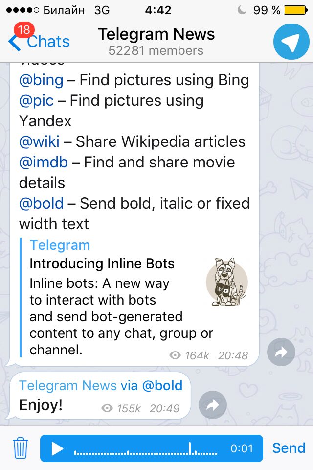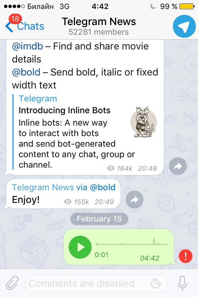 Всем привет! У меня есть одна просьба. Дайте ссылку на канал, который рассказывает о будущих (и не только) нововведениях в Telegram. Если кто знает-откликнитесь!😊