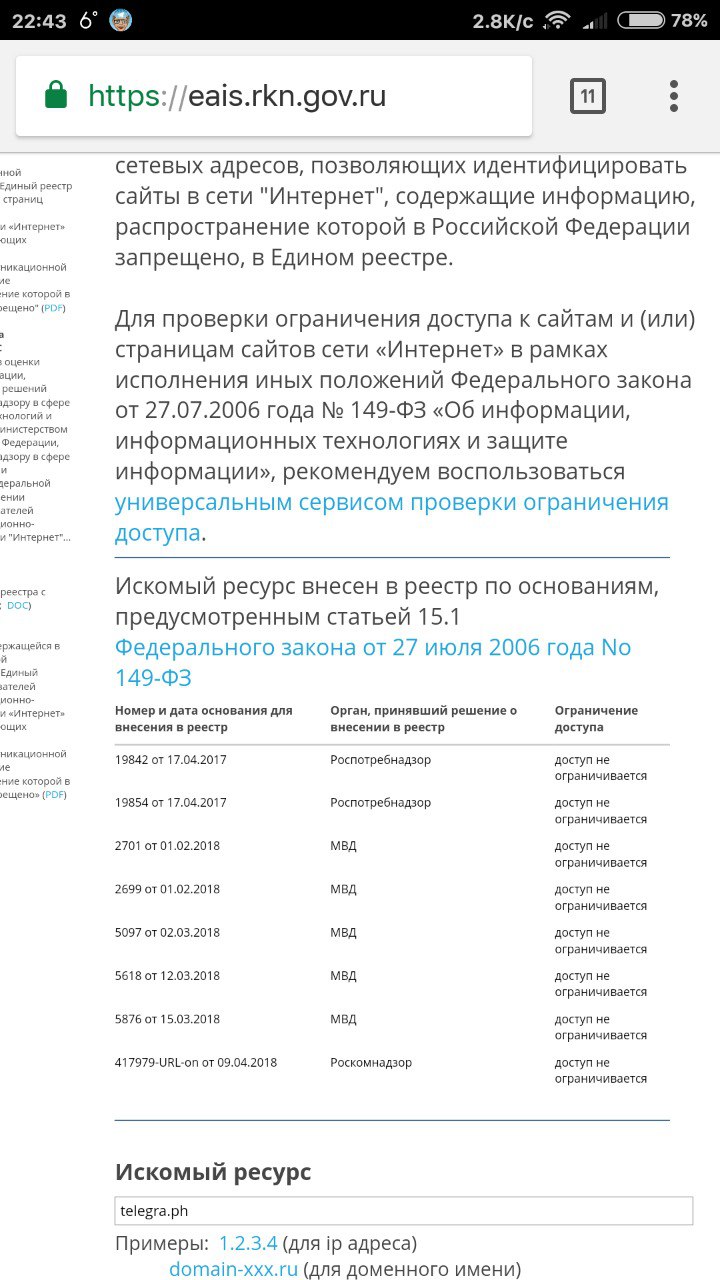 1. Официальные сайты telegram.org, t.me, telegram.me, сервис telegra.ph - ❌ полностью заблокированы