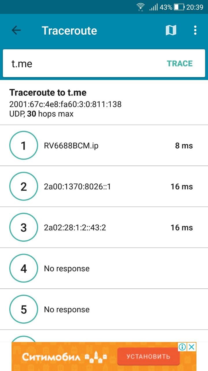 Прислали трейс из МГТС до Тележки. Они начали блокировать IPv6