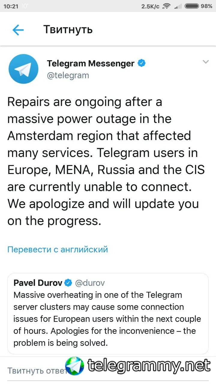 Как многие могли догадаться, в работе Telegram произошёл сбой.
