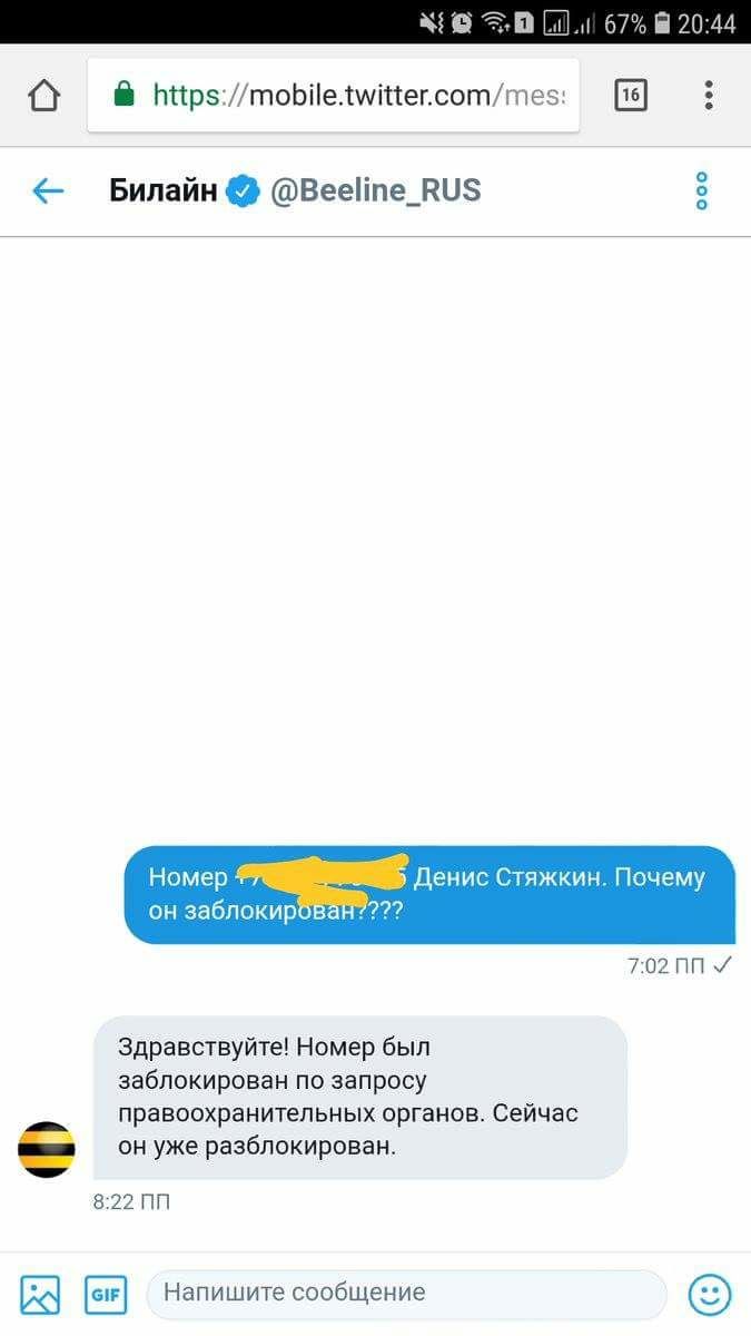 Блогер Денис Стяжкин пишет, что вчера на митинге у него оказался заблокирован номер телефона. Он стал разбираться, обратился к оператору связи. «Мне в офисе @Beeline_RUS сказали, что номера заблокированы у всех абонентов в Москве на время проведения митинга», - рассказал Стяжкин. Позже оператор «переобулся», написал, что нарушен какой-то пункт договора о предоставлении услуг связи, но блогер не верит, планирует сменить оператора. К слову, на недоступность связи жаловались многие, кто был вчера на митинге.