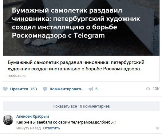 Благодаря РКН теперь мне понятно: бумажный самолётик роняет репутацию ведомства, размазывает их профессиональные навыки и побеждает тот каменный топор, с которым РКН пытается с этим самолётиком бороться".