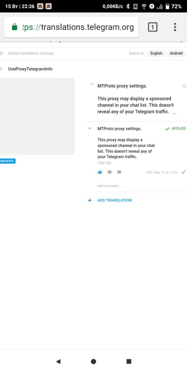 На странице английской локализации Telegram для Android появились интересные строки по поводу MTProxy, нового типа прокси, который будет доступен всем пользователям в будущем.