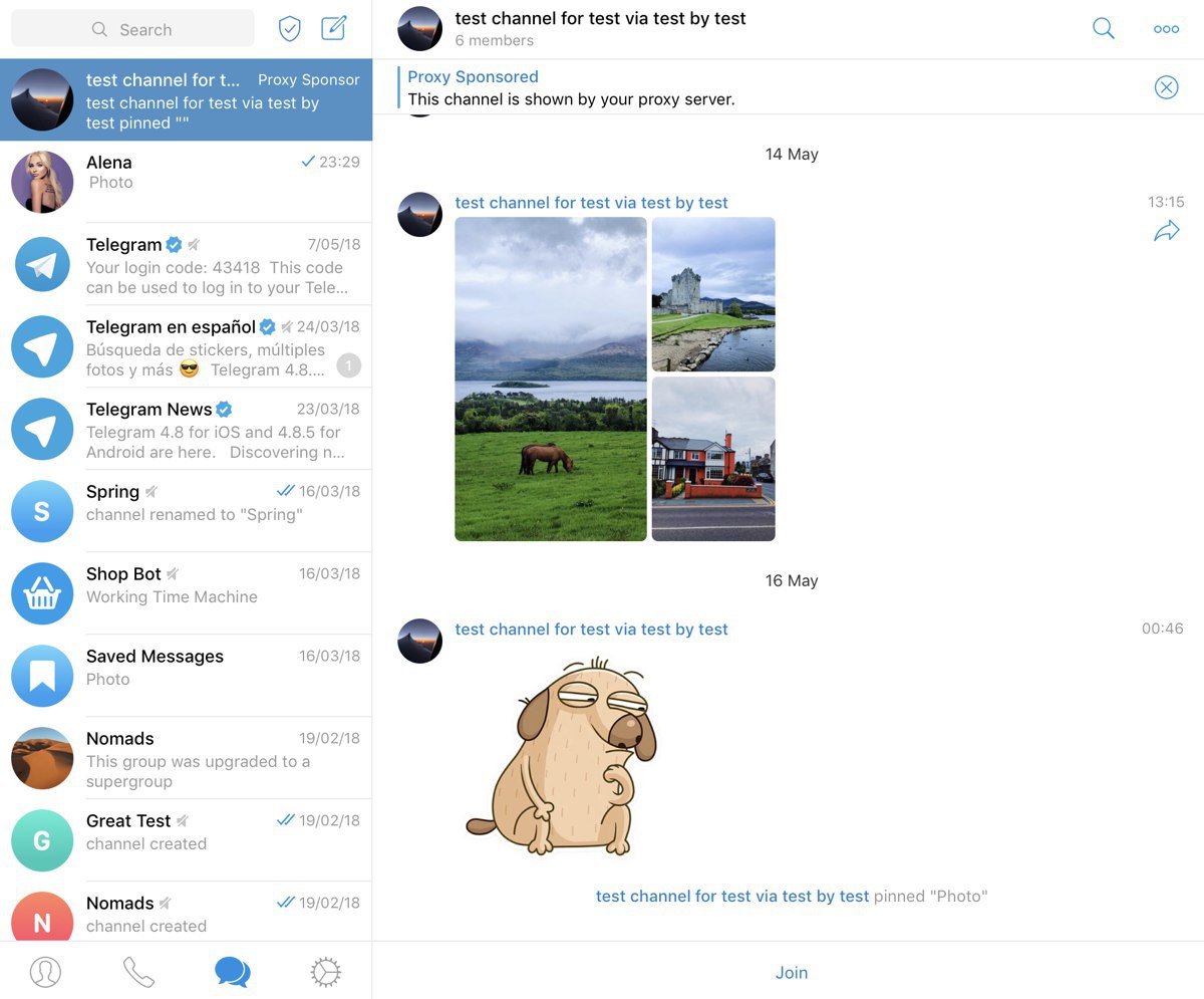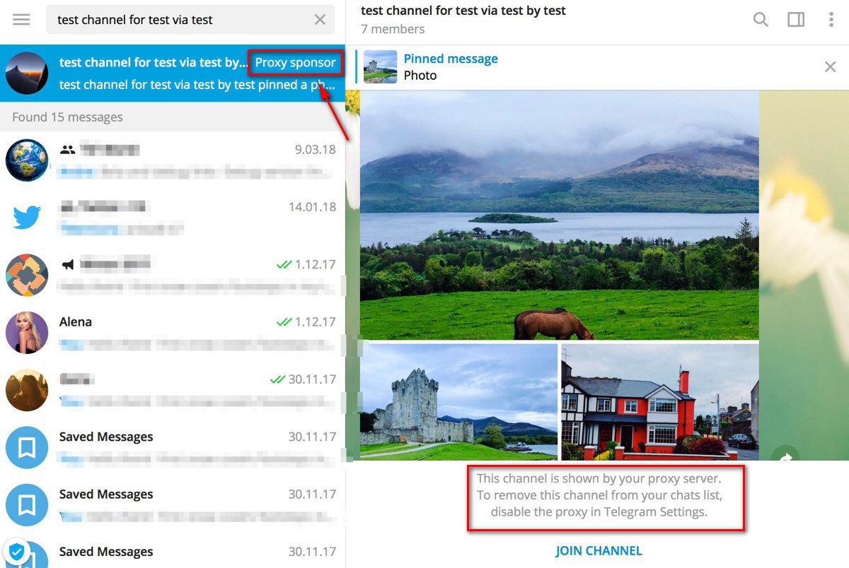 Вот как на macOS будет выглядеть спонсорский канал если прокси MTPROXY