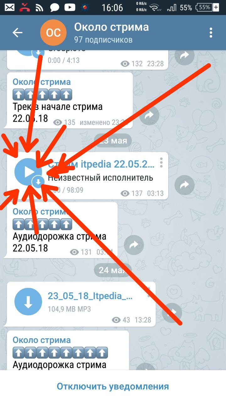 А разве стрелка "вниз" не для того, чтобы скачать, а стрелка "вправо" для того, чтобы потоково воспроизвести?