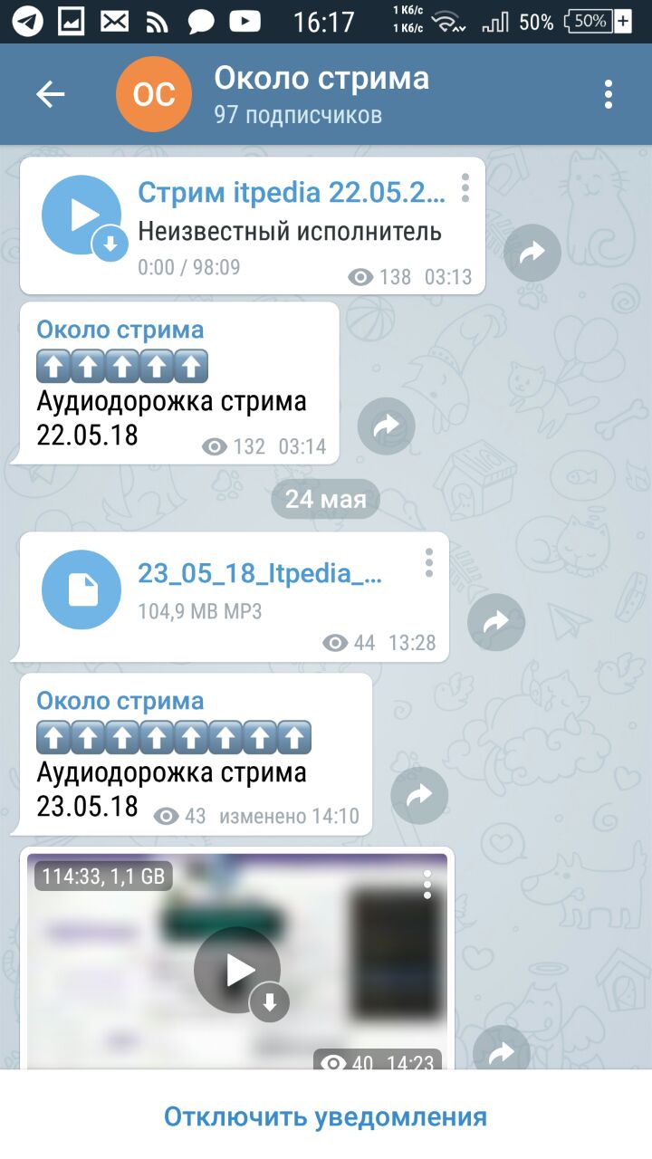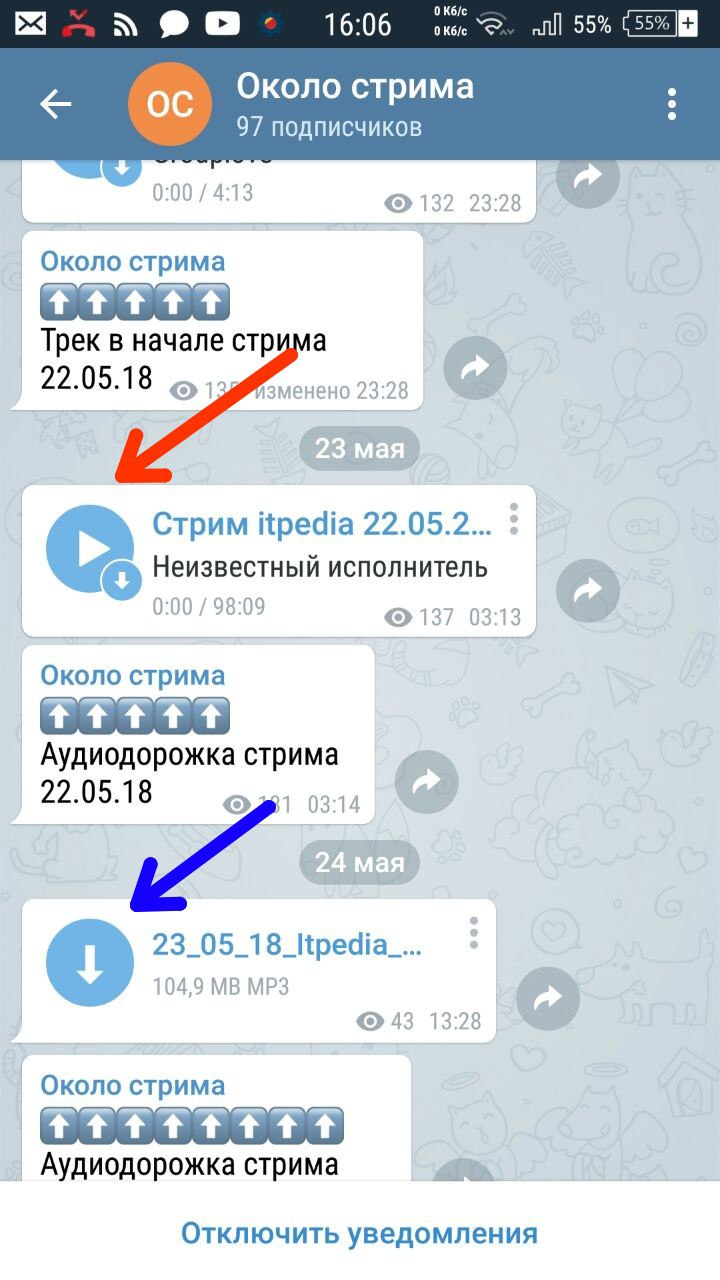 Красная - обработан, как аудио. Синяя - обработан, как документ