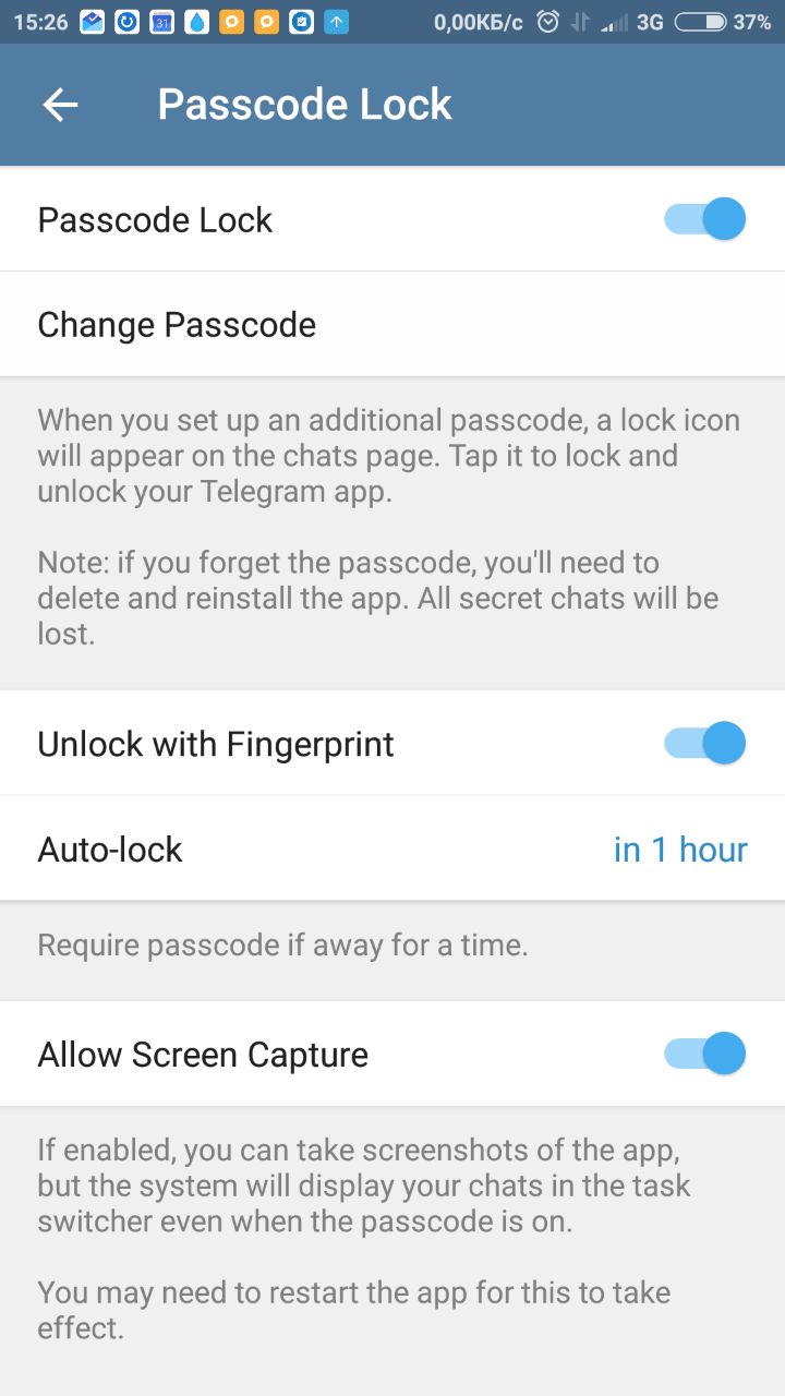 Вообще на эту тему снятия секретных в твиттере каждую неделю у кого-нибудь горит. Поэтому Телеграм на сайте расписал, дескать, когда устройство позволяет запретить – запрещаем, когда позволяет уведомить – увеломляем, но в целом ничего не гарантируют, потому что все это зависит от особенностей систем и девайсов